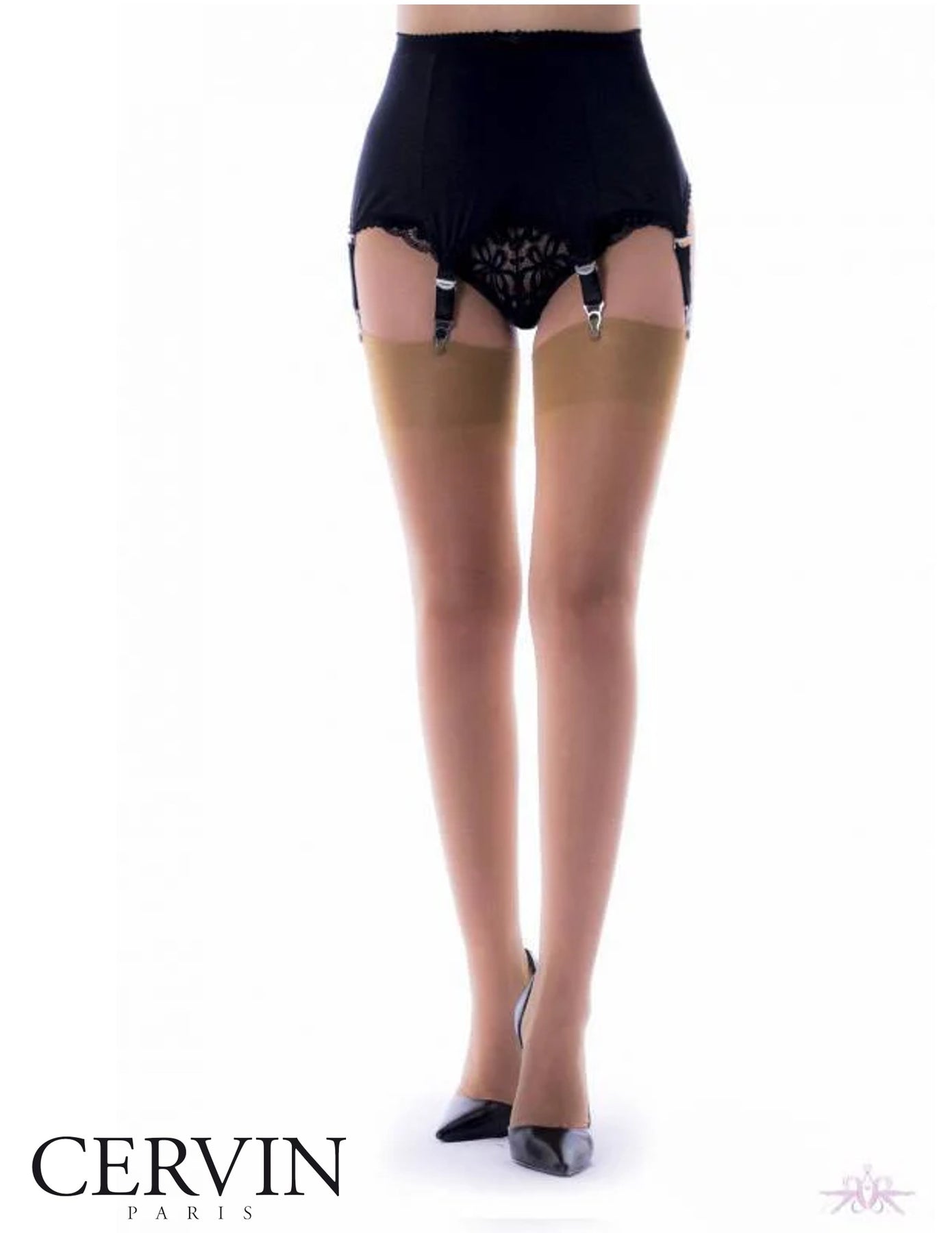 Classical elegance in this brand new version of the Capri 15 Denier Sheer RHT Nylon Stockings by Cervin Paris. A wardrobe staple for beautiful legs, the Capri 15 are perfect for everyday and now more transparent and resistant than ever. They are 100% Nylon, non-stretch stockings with a vintage look from the forties and fifties. They are produced using traditional methods on the original machines, these 15 denier stockings have authentic double stitching, a reinforced heel and toe (RHT) and a soft welt top. If you prefer to wear your stockings higher up the thigh, then we recommend that you order the next size up to what you would normally buy.